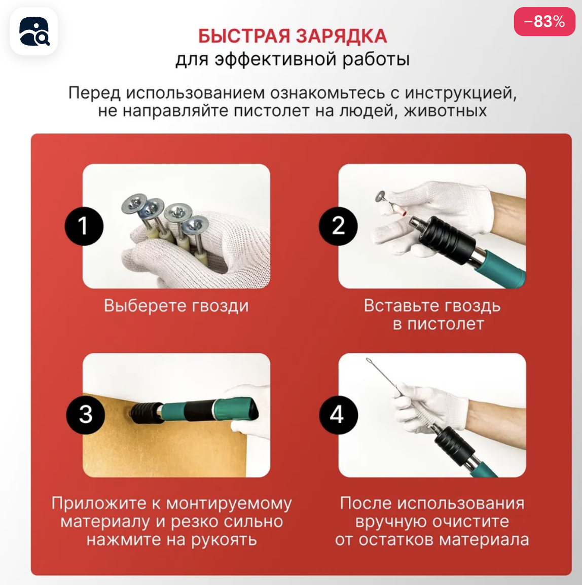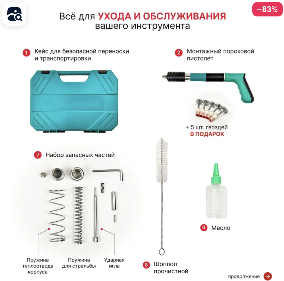 Отдельно приобретаются строительные гвозди с пороховым зарядом по цене 60 копеек/штука